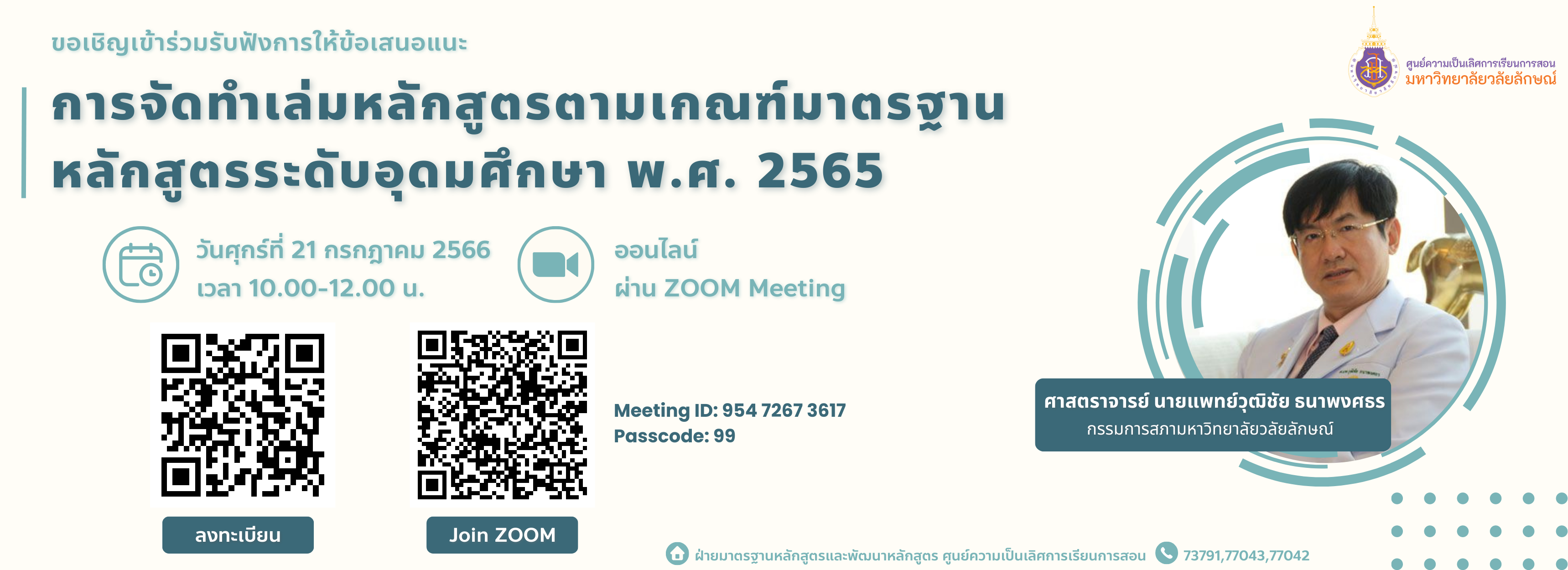 การจัดทำเล่มหลักสูตรตามเกณฑ์มาตรฐานหลักสูตร ระดับอุดมศึกษา พ.ศ.2565 วันที่ 21 ก.ค. 2566