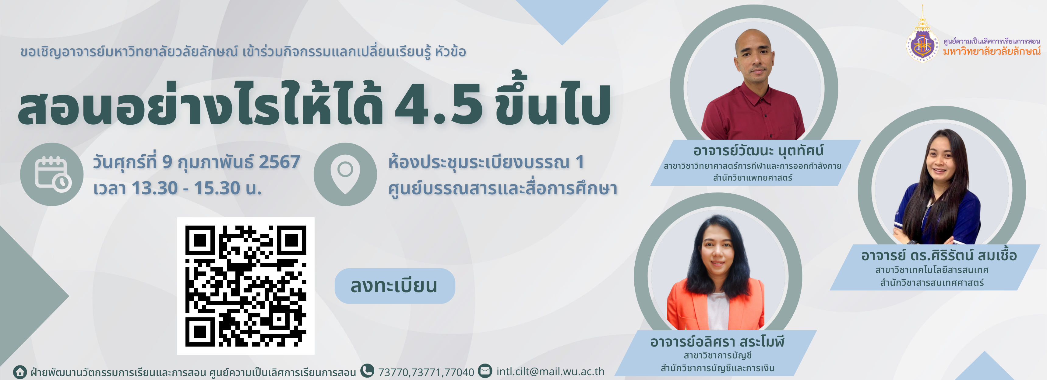 | ชื่อกิจกรรม | KM เรื่อง สอนอย่างไรให้ได้ 4.5 ขึ้นไป วันที่ 9 ก.พ. 2567 |