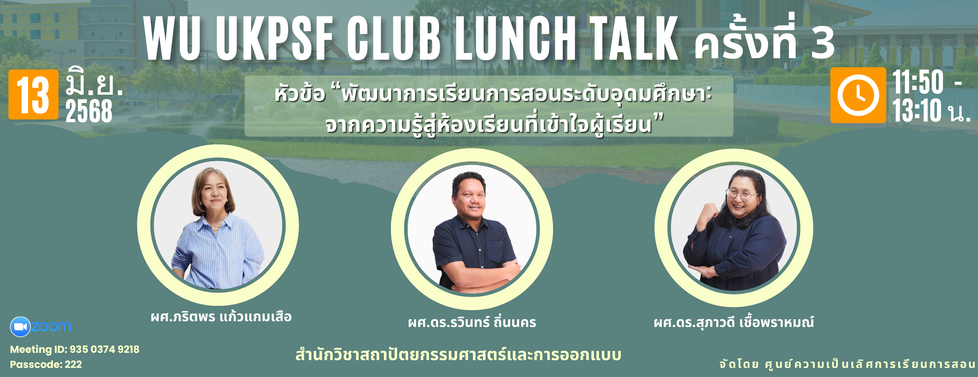 กิจกรรม WU UKPSF Club Launch Talk ครั้งที่ 3 หัวข้อหลัก ""พัฒนาการเรียนการสอนระดับอุดมศึกษา: จากความรู้สู่ห้องเรียนที่เข้าใจผู้เรียน" |