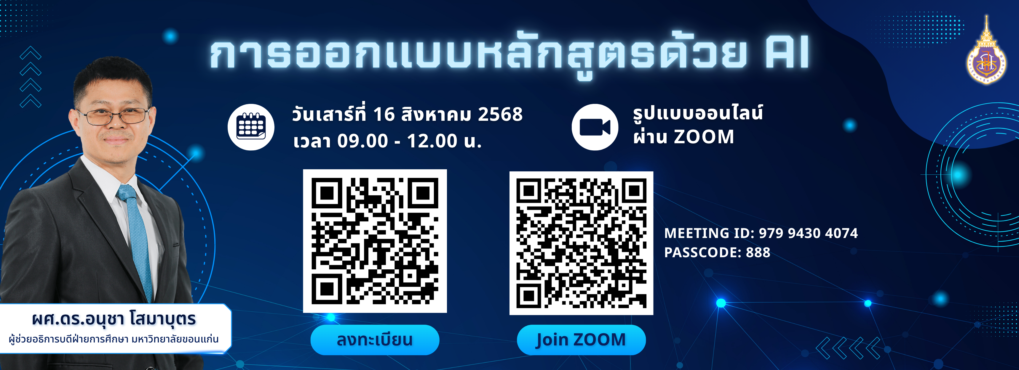 | วิทยากร | ผศ.ดร.อนุชา โสมาบุตร ผู้ช่วยอธิการบดีฝ่ายการศึกษา และรักษาการแทนผู้อำนวยการสถาบันการสอนวิชาศึกษาทั่วไป มหาวิทยาลัยขอนแก่น |
