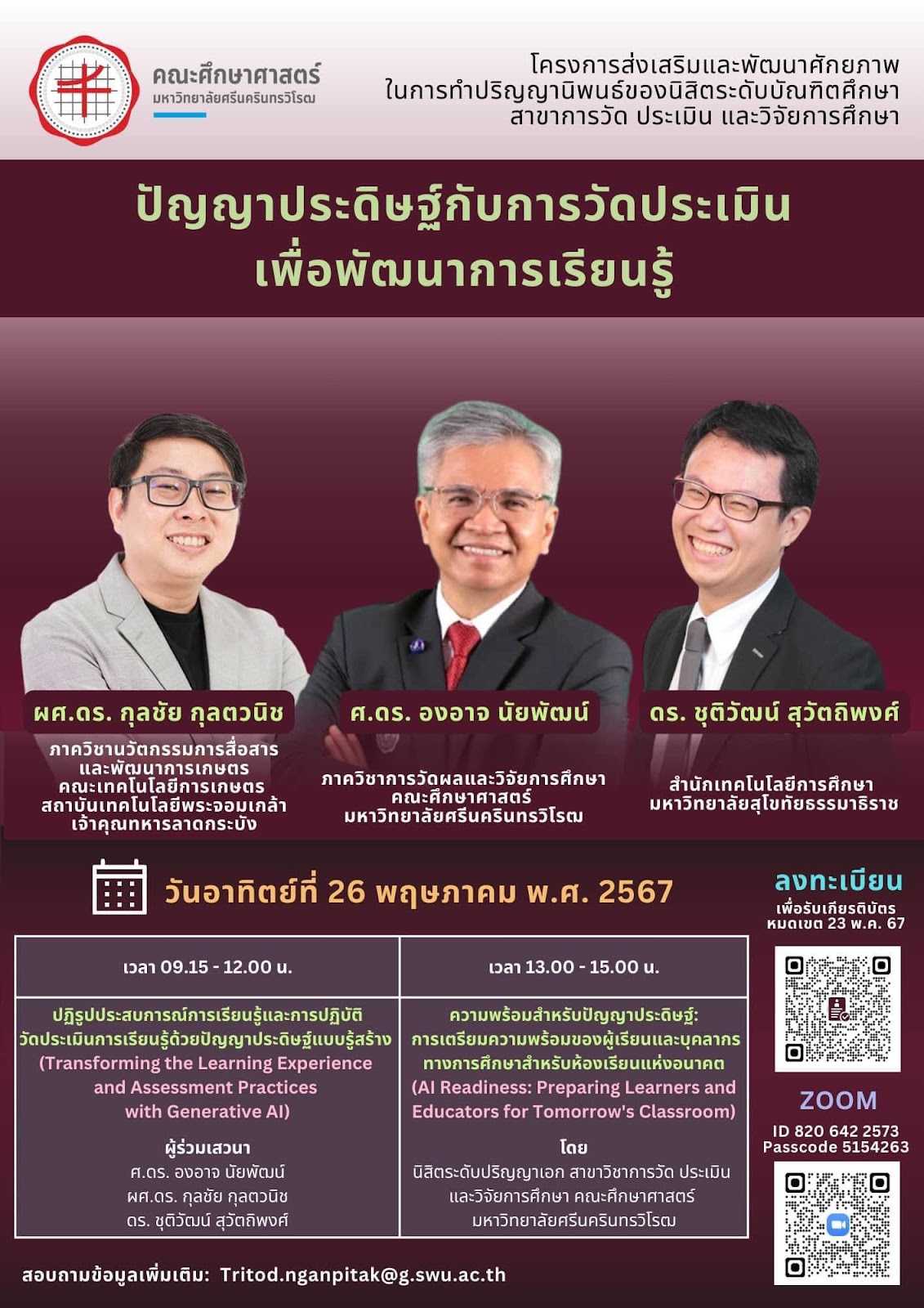 ขอเชิญผู้สนใจเข้าร่วมฟังการสัมมนา หัวข้อ ปัญญาประดิษฐ์กับการวัดประเมินเพื่อพัฒนาการเรียนรู้ ในวันอาทิตย์ที่ 26 พฤษภาคม 2567 เวลา 9.00-15.00 น.