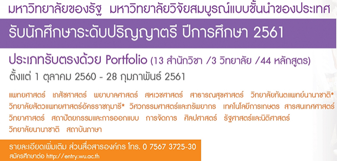 | 16 | มหาวิทยาลัยวลัยลักษณ์เปิดรับนักศึกษา ปีการศึกษา 2561